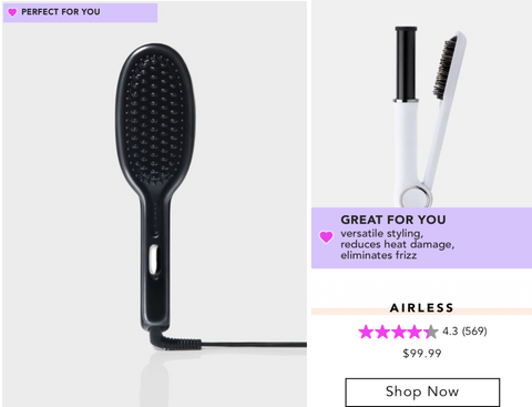 - Hair Quiz (click here): Dani’s going to ask you a series of questions about your hair type, how you like to style it, and what type of tool you’re looking for. Then she will provide some recommendations for styling tools, wet goods, and accessories for you.